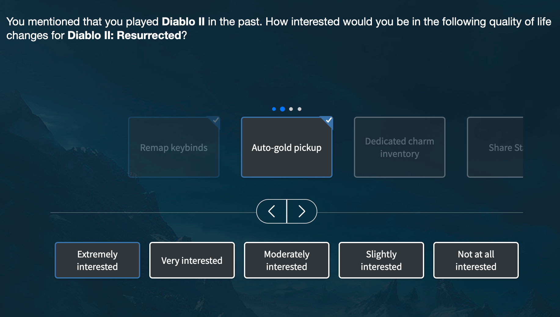 A darne notizia sono stati alcuni utenti su reddit, che hanno postato anche alcune schermate del questionario che riguardano D2R che trovate qui sotto.