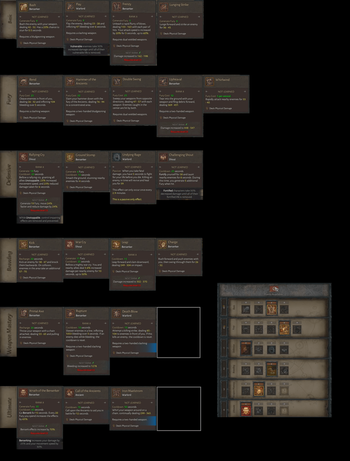 – Class specific (Wrath per il Druido, Conjuration per l’Incantatrice, Brawling per il Barbaro)