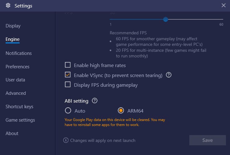Trovate questa opzione dentro Settings → Engine → ABI setting → ARM64.