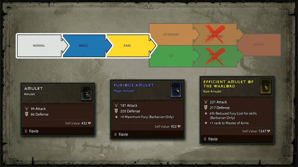 La lista delle rarità degli oggetti di Diablo IV è così composta: