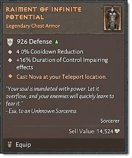 Se osservate con attenzione l’oggetto presente nell’immagine sopra, noterete che gli affissi leggendari presenti sono specifici per il barbaro, ma non vi è alcuna specifica che indichi che l’oggetto sia indossabile solo da quella classe (anche se viste le caratteristiche diventa automatica come opzione).