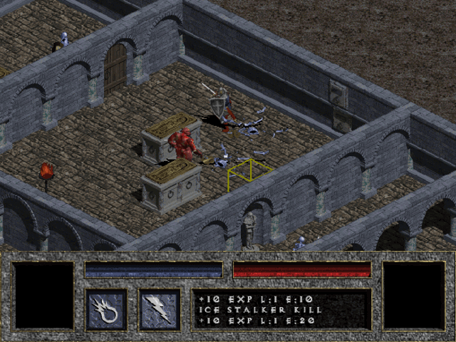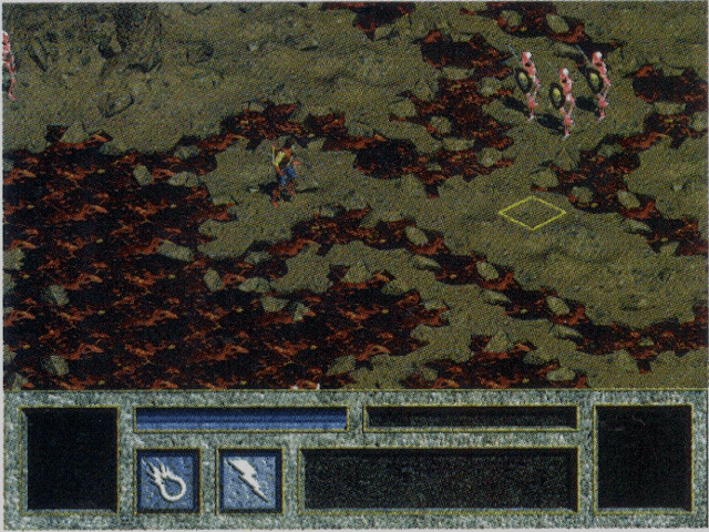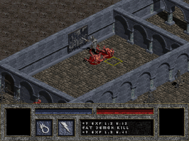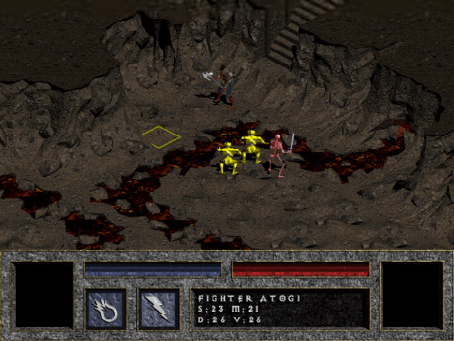 Screenshot della versione a turni di Diablo. Noterete dei cursori rossi e gialli, presumibilmente pensati per il movimento e l’attacco.