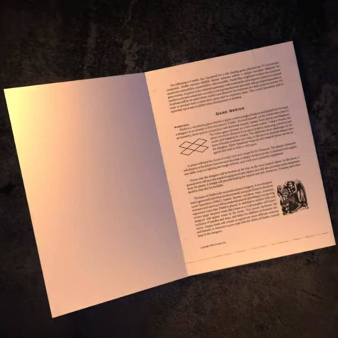 Questa che segue è la traduzione del pitch ufficiale sul primo Diablo rilasciato da Condor nel 1994 (la società che poi divenne Blizzard North) e reso pubblico nel 2016 da David Brevik. Il pitch è un documento illustrativo di un progetto con lo scopo di cercare dei finanziatori. E’ interessante notare come alcuni degli aspetti già prevedevano future implementazioni grazie a dei pacchetti di espansione (che oggi chiamiamo DLC). Inoltre tutto il sistema di gameplay a turni venne poi cambiato con un sistema di gioco in tempo reale.