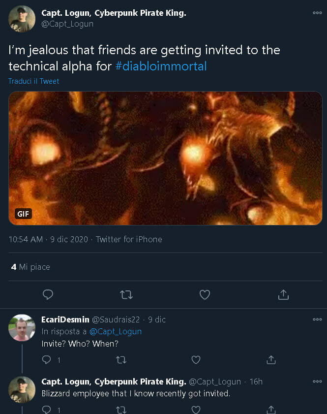 Il Capitano Logun del Keelhauled Podcast ha recentemente twittato che i suoi amici sono stati invitati al Diablo Immortal Technical Alpha. Per poi specificare un po’ più sotto che “un amico che conosce è stato invitato di recente”.