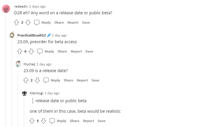Dopo che un fan ha chiesto dettagli in merito a una probabile data di uscita, Brushie ha informato che la data di rilascio di Diablo 2: Resurrected è stata impostata per il 23 settembre 2021.